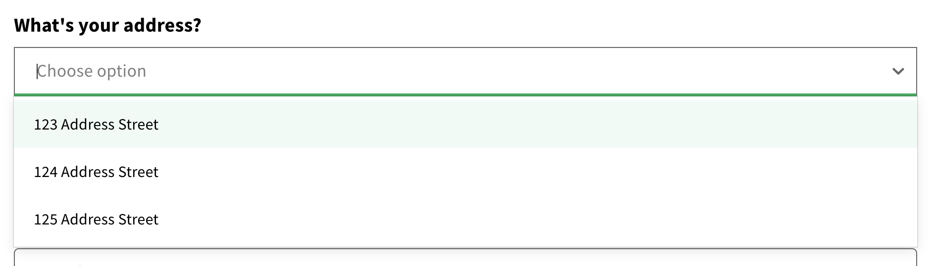 Add a single-select auto-complete drop-down option for addresses, in order to get as granular as possible. This will need to be done in the demopgraphics section to avoid publishing individuals' addresses unless this is a hidden comments or invite only project.
