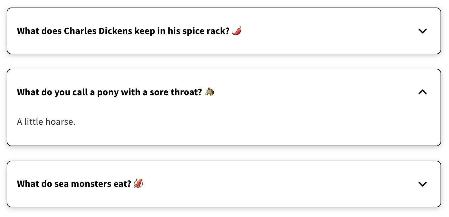 Accordions - also known as drop-down blocks - allow a user to click on a heading to expand the content below. This provides a much better user experience by keeping the page short and neatly organised, as well as minimising the amount of scrolling a mobile user is required to do.