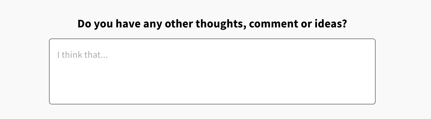 Sometimes you’ll want to give respondents the opportunity to write whatever they want - you can choose from the short (single line) and long (multi-line) questions. These boxes do not have a character limit, but give an indication of the amount of text you expect a respondent to write. It is always good to have one of these open-ended questions in a survey.
