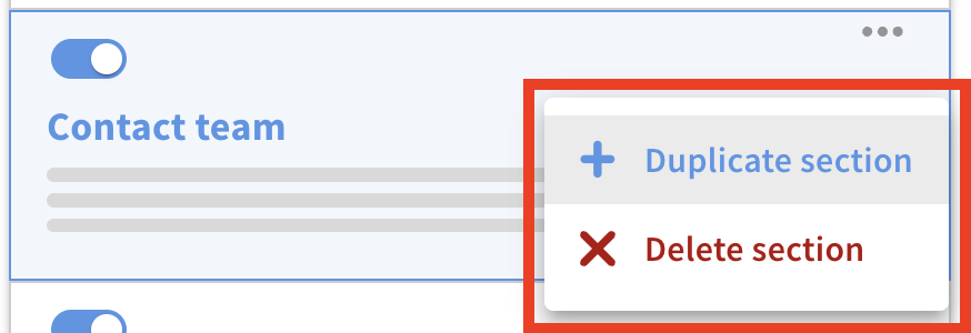 Delete or duplicate a content block by clicking the ā¢ā¢ā¢ button and selecting the relevant option