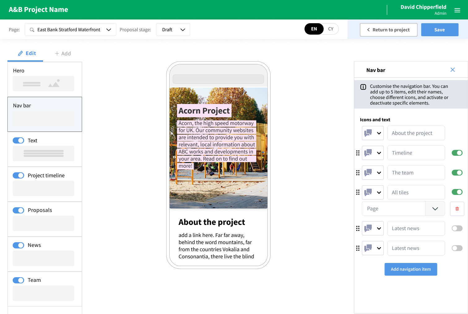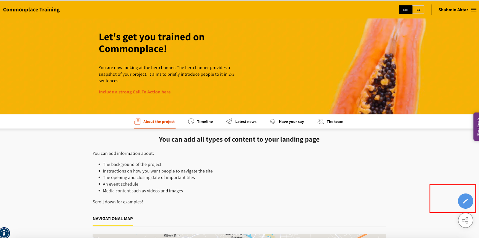 Every project has a navigation bar. Editing it will affect all pages where the navigation bar appears in your Commonplace.