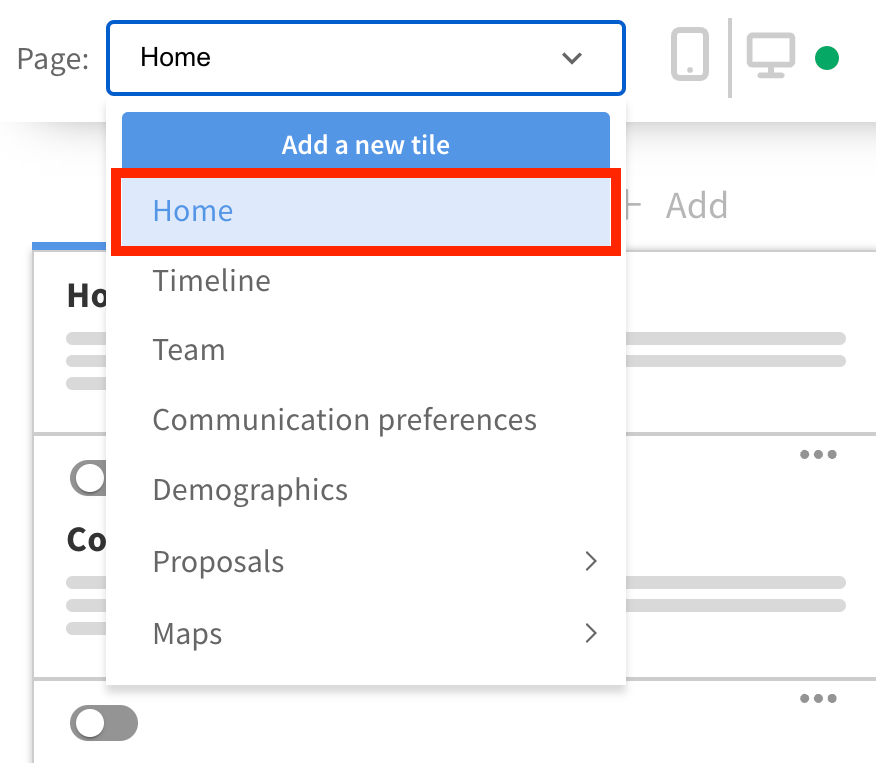 If not already on the home page, navigate to it by selecting 'home' from the 'page' menu in the top left corner