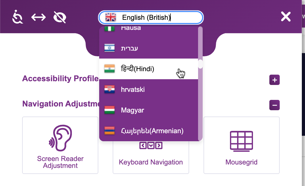 A lower cost alternative is our our light translation solution. Enabled by the user via a widget, content can be translated into one of 44 currently supported languages. Please note that as this is an in-browser solution, the quality of translation may vary. Emails sent from the platform will also not be translated using this approach.