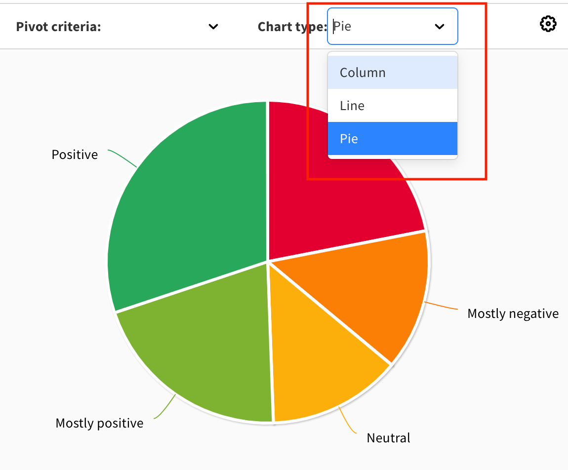 4. To apply a pivot criteria to a chart, select the drop down at the top left corner of a chart and choose the criteria you want to pivot it against. With a pivot criteria, you can compare the contributions against demographics of the respondent.