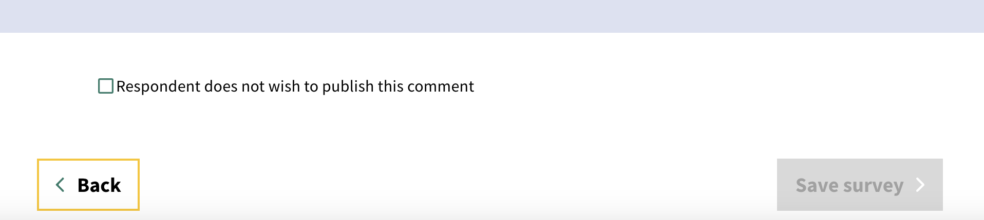 The surveyor(s) must always mark the contribution as hidden, unless parental consent has been received. A checkbox is available in Face to Face / Interview Mode to prevent publishing of the contribution. Click the 'Respondent does not wish to publish this comment' checkbox on every interview.