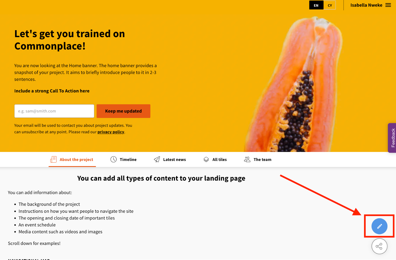 1. Click the edit icon on a webpage, which is located in the bottom right corner to go into edit mode.
