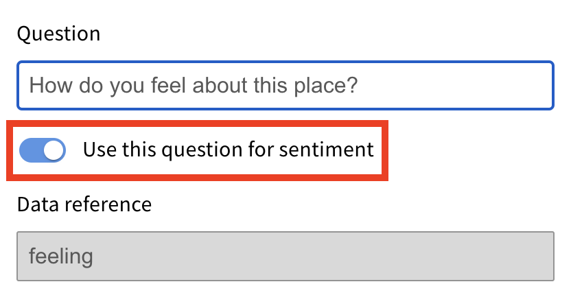 To mark a question as the sentiment question, toggle the 'Use this question for sentiment' switch on.