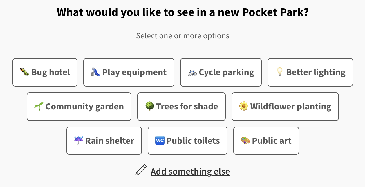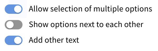 Check that the 'add something else' option is only enabled where needed. For example - a scale from 'Very positive' to 'Very negative' does not need an 'add something else' option - all the possible options are already listed. Additionally, free text responses in the 'add something else' field can generate additional analysis work to categorise the answers people provided.