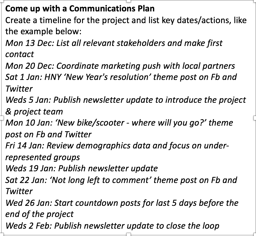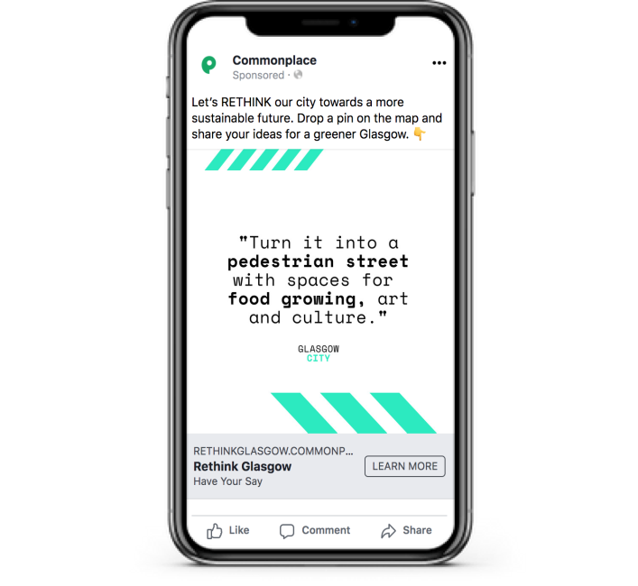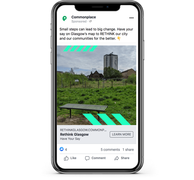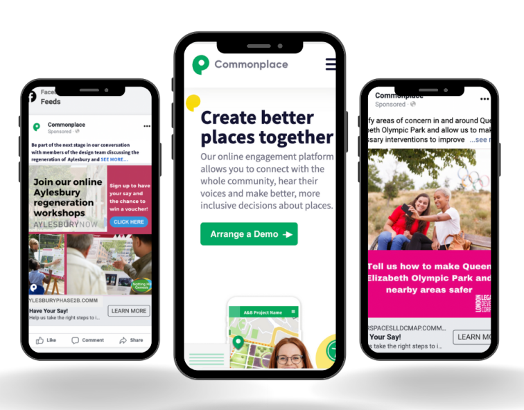 For large defined geographical areas it may be worthwhile budgeting in some social media promotion (i.e. Facebook/Instagram ads) - these can be very effective for drawing in traffic when the area you would like to engage with is quite large. You can either prepare a social media campaign with your communications team or purchase a social media package from Commonplace.