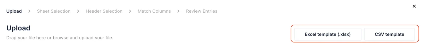 Next, select the file to import. You can drag and drop your file, or select it by clicking on Import contributions: